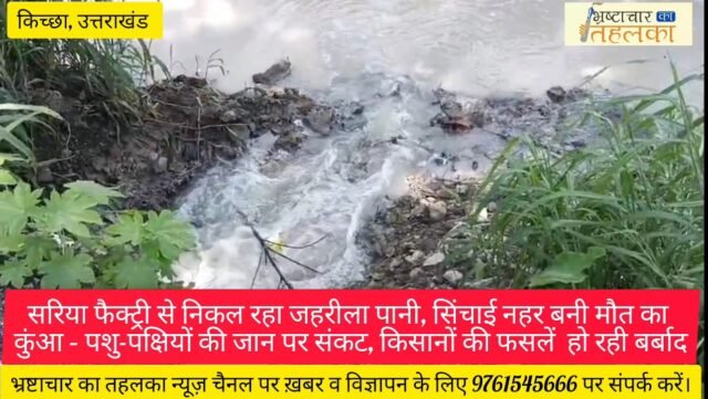 किच्छा क्षेत्र में स्थित सरिया फैक्ट्री द्वारा कैमिकल युक्त गंदा पानी सीधे सिंचाई नहर में छोड़े जाने से ग्रामीणों का जीवन नरक बन चुका है। किशनपुर और पंचक्की राईट पाहा नहर का पानी अब पूरी तरह प्रदूषित हो गया है। जहरीला रासायनिक पानी पीकर पशु और पक्षियों की मौत हो रही है, वहीं किसानों की मेहनत से उगाई गई फसलें नष्ट होकर बर्बादी की कगार पर पहुँच चुकी हैं।