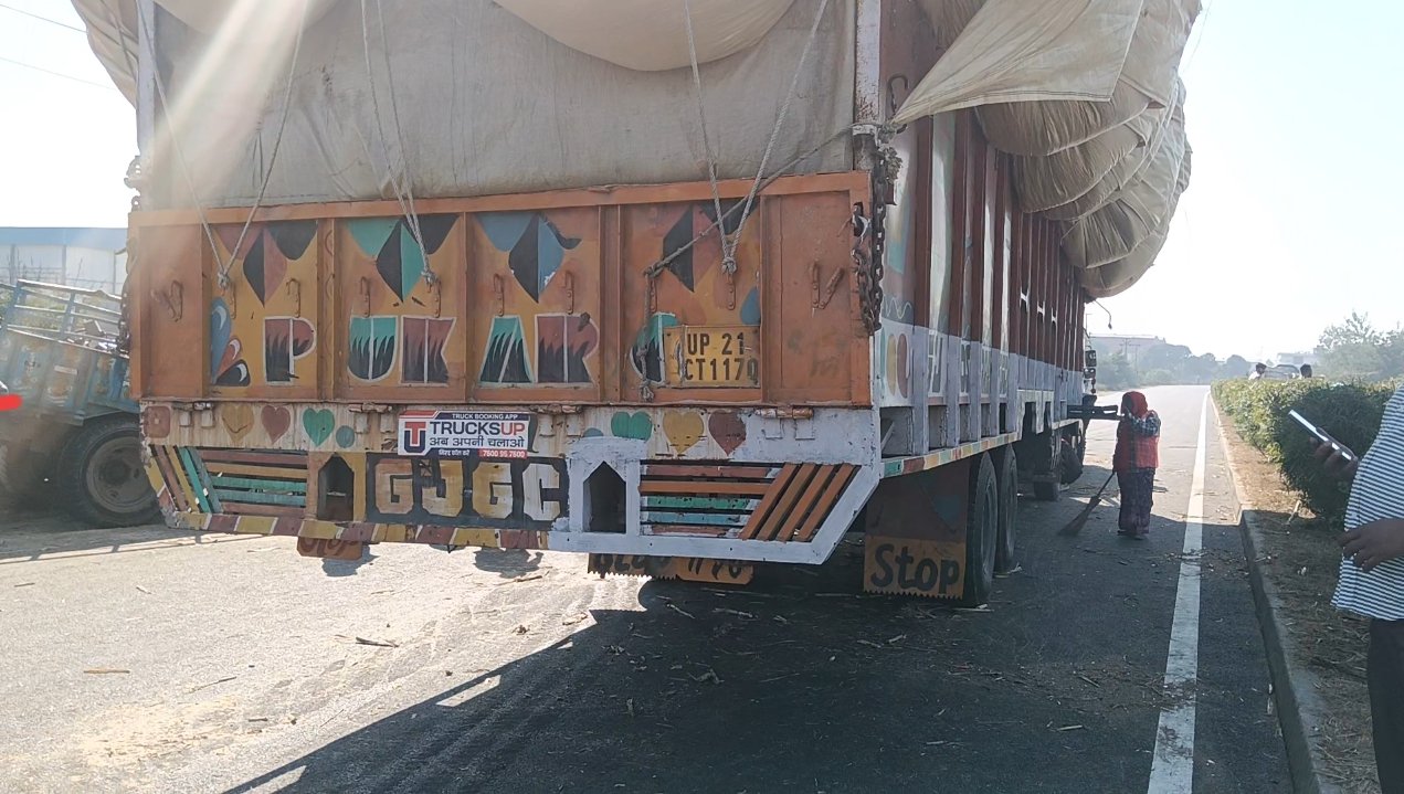 दोनों ट्रैक्टर चालकों को गंभीर चोटें, गन्ना सड़क पर बिखरा, हाईवे पर लम्बा जाम