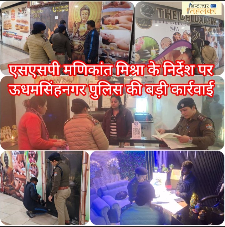 रुद्रपुर। जनपद में अवैध गतिविधियों के खिलाफ ऊधमसिंहनगर पुलिस ने सख्त रुख अपनाते हुए बड़ी कार्रवाई को अंजाम दिया है। वरिष्ठ पुलिस अधीक्षक मणिकांत मिश्रा के स्पष्ट निर्देशों के क्रम में एंटी ह्यूमन ट्रैकिंग यूनिट (AHTU) ऊधमसिंहनगर द्वारा पंतनगर थाना क्षेत्र अंतर्गत मेट्रोपोलिस मॉल में संचालित 10 से अधिक अवैध स्पा सेंटरों पर एक साथ छापेमारी की गई।