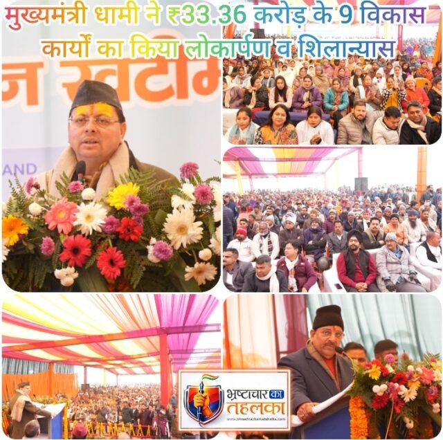 मुख्यमंत्री ने नगर पालिका खटीमा के वार्ड संख्या 7 व 8 में 48.45 लाख रुपये की लागत से बने पेयजल नलकूप, ओवरहेड टैंक व पाइपलाइन कार्यों, नानकमत्ता विधानसभा क्षेत्र में 490.21 लाख रुपये से निर्मित राजस्व निरीक्षक व उपनिरीक्षक आवासीय भवनों तथा 359.91 लाख रुपये की लागत से उपनिरीक्षकों के कार्यालय भवनों का लोकार्पण किया। इसके अलावा ग्राम मझोला में झील से पॉलिगंज की ओर 225.62 लाख रुपये की लागत से नाला निर्माण कार्य का भी लोकार्पण किया गया।